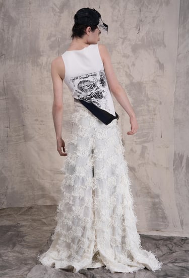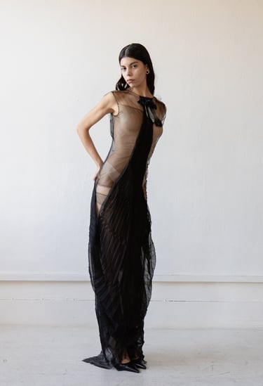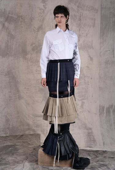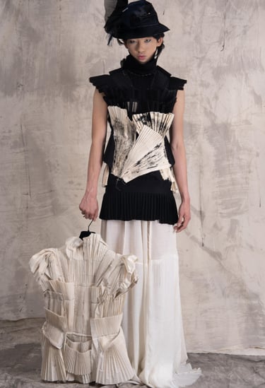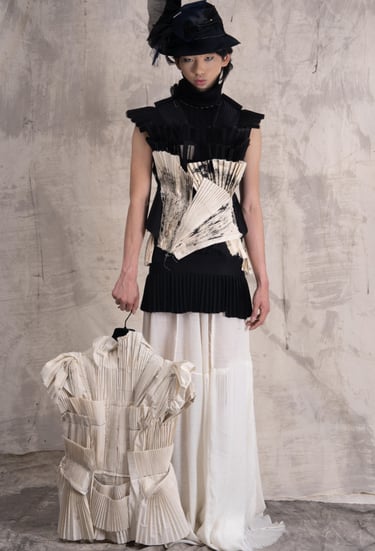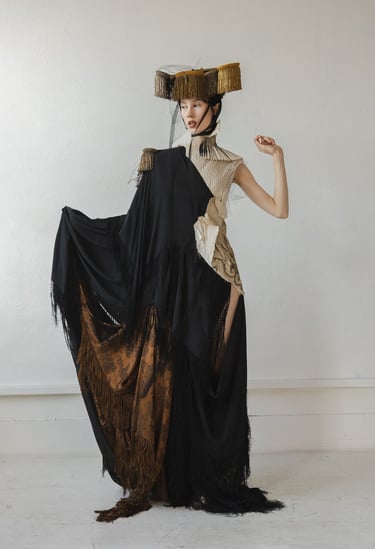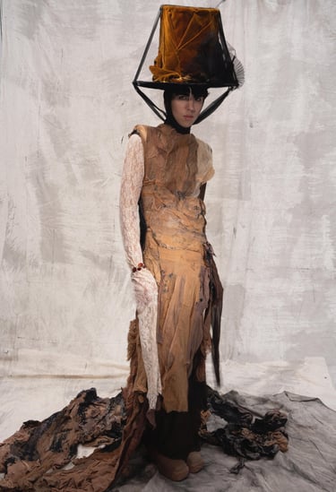 A Theft of Essence was conceived in two parts : two distinct collections that communicate, echo, and breathe through one another. Together, they trace a life-path carved between control and liberation, a journey from imposed conformity to unapologetic self-expression.