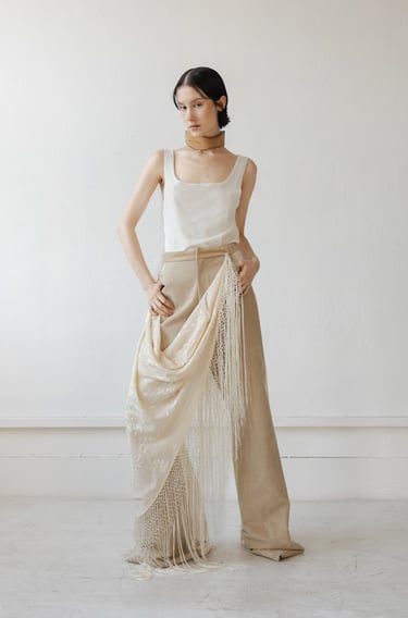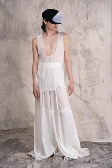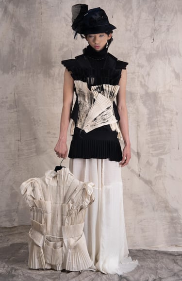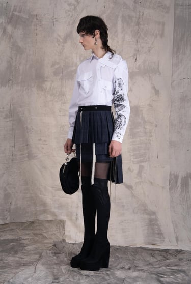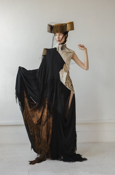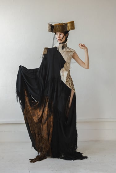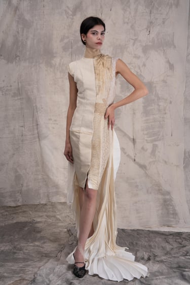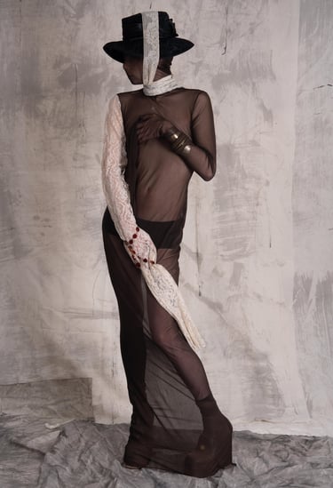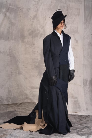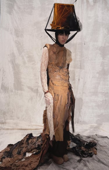A Theft of Essence was conceived in two parts : two distinct collections that communicate, echo, and breathe through one another. Together, they trace a life-path carved between control and liberation, a journey from imposed conformity to unapologetic self-expression.